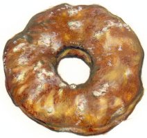 1.Sift flower into a large mixing bowl, and combine with the salt, baking powder, cinnamon, nutmeg and sugar. 2.Rub in the butter with the fingertips. 3.Gradually add the water, and press together with the hands to make a smooth, soft dough, adding more water if necessary. 4.Turn out the dough onto a well-floured board, or baking tray, and roll out the dough to a ¼˝ (½ cm) thickness. Using an upturned mug, approximately 3˝ (7½ cm) in diameter, press out the doughnut circles, and set to one side. Keep rolling the dough up into a ball, and rolling it flat, until all the dough is used up. 5.Using a small bottle top cut out holes in the centre of the doughnuts. Set the ‘doughnut holes’ to one side. 6.Heat 1˝ of frying oil in a small heavy-bottomed pan. To tell when the oil is ready, drop a small piece of dough into the pan. When it rises to the surface almost immediately, you can begin to cook the doughnuts. (It is best to ask an adult to help with the frying, because it is very easy to burn oneself on the hot oil.) 7.Using a slotted spoon, gently lower a doughnut into the hot oil. It will sink to the bottom and then puff up and rise to the surface. When it starts to brown (this will only take a few seconds), carefully turn it over. When the underside is also brown, remove the doughnut from the hot oil, and place on a tray, large plate etc. You will probably be able to cook two doughnuts at a time. 8.As soon as the doughnut is removed from the frying oil, sprinkle with sugar on both sides. It is probably best if one person does this while another person frys the doughnuts. 9.After all the doughnuts are cooked, fry the ‘doughnut holes’. These will cook very quickly. Sprinkle with sugar and eat warm. |