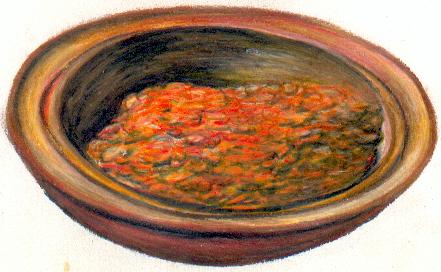 Khichari is the original of the English ‘Kedgeree’. It was popular with the Mughal rulers of India, and this Gudjerati Khichhari was eaten by natives of Bengal on festive occasions. The dish should not be mushy – remove from the oven when the grains are moist and all the water has been absorbed.
