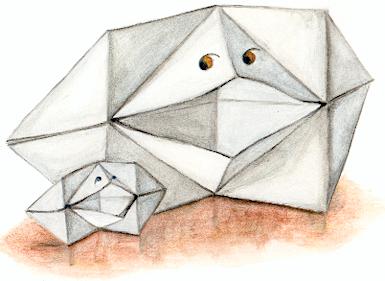 10. Draw on eyes. Hold the two ends and push together so that the chatterbox opens it's mouth. (You have to be careful the first time you do this. Make sure that all the folds bend in the right direction and that they do not crease.) |