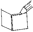 Diagram 2Resting the sheet of paper on a piece of thick cardboard, or chipboard, cut along three sides of each of the doors with a craft knife. (It may be necessary to ask an adult to help with this). If cutting out circular doors, slice round approximately three quarters of the circle. Fold back the doors.