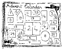You can also draw a picture of the sheet of paper underneath. For example, if there is a drawing of a castle on the top sheet, you can draw the inside of the castle on the bottom sheet, and incorporate the little pictures behind each of the doors into the larger picture. In this case, do not glue the two pieces together, instead stick them together with Blue Tak. On the 25th December the top pieces can be removed to reveal the picture underneath.