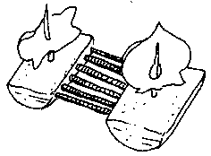2. Cut the cocktail sticks in half. Push two halves into the side of one of the split pieces of cork, then fix the remaining piece of cork to it by pushing it into the cocktail sticks. (Diagram 2) |