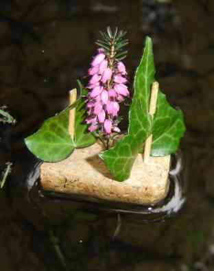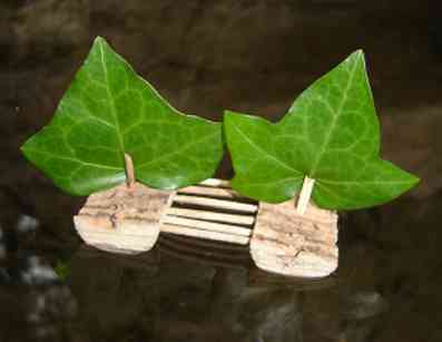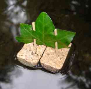 Cork Boats All you need is corks and cocktail sticks to make these adorable little boats. If you don't have any cocktail stick handy then you can always use matchsticks sharpened to a point. In Springtime, when there is plenty of water around, it is great fun to sail one of these little cork boats down the length of a stream. They are small enough not to get stuck too often, and the cork makes them super-floatable. If you don't have a stream to sail them on, then they can be sailed across any pool, puddle or well. The slightest breeze will catch their sails and you can make them race each other to the other side. The bigger the leaf you have used for a sail, the swifter it will go, until you make it too large and the boat will topple over! |
