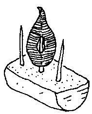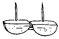 | 3. Push the other pieces of cocktail stick into the flat side of the cork, as masts (diagram 3), and add the leaves leaf, or piece of paper for sails (diagram 4). | ![]() Diagram 3 |