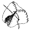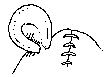 Using a single strand of embroidery thread, sew the three body pieces together using over and over stitch. Leave one side half unsewn. (Diagram 1)