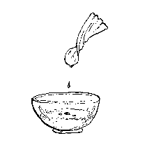 Decorating the House Now comes the fun part! It is really up to you how you decorate your house. Favourite sweets can be used, different coloured icing, and biscuits, or left over gingerbread scraps, can be stuck to the roof or walls. To make up a small amount of icing, sift two ounces (50 g) of icing sugar into a bowl, and add a few drops of liquid. Coffee will make a brown which is good for filling in any cracks in the house, and natural dyes can easily be obtained from the garden. On the picture, spinach was used for the green, and raspberries for the pink. Pound the item in a pestle and mortar until it starts to look juicy, then squeeze it through muslin (diagram 3). Icing can be applied with a piping bag, but unless you have used a piping bag before, a paint brush will be neater and easier to control. Display your finished house in a