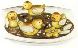 the tail and dab a little cocoa powder onto the duckling’s back and