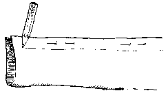 4. Using tailor’s chalk, or pencil, rule out a line 3/8˝ (1 cm) from the top of the strip (diagram 1) then sew along the line using backstitch. After you finish off, do not cut the thread but drop it, with the needle, through the tube. Use this to help you turn the material inside out.